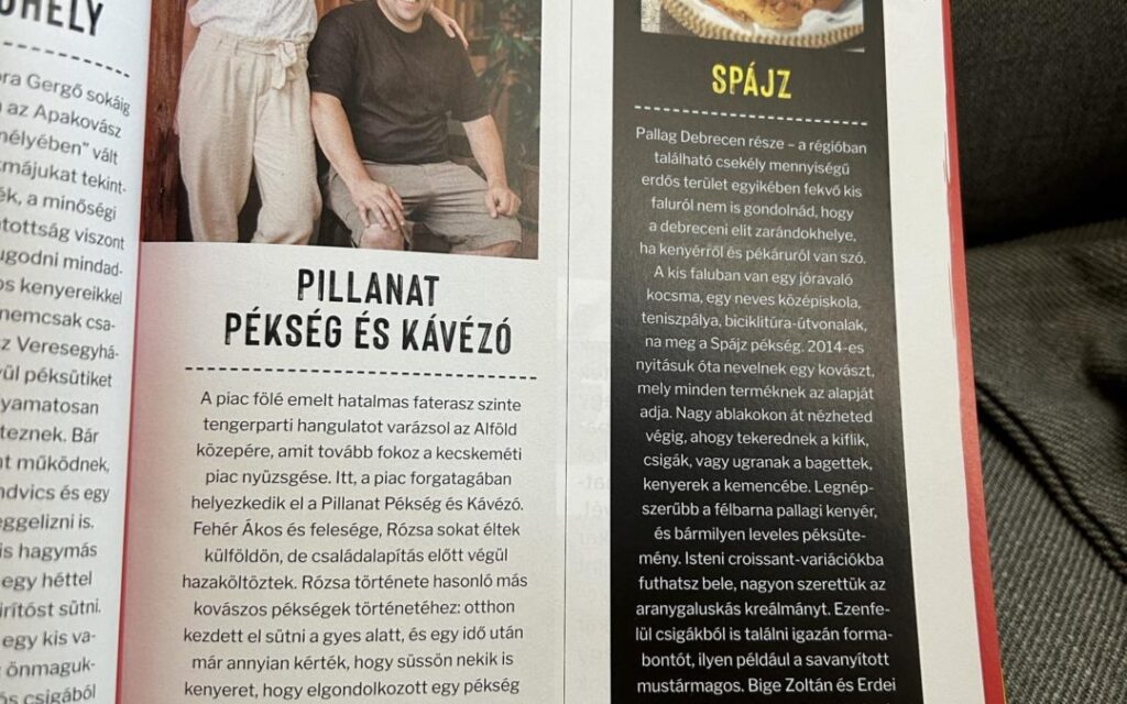 Bemutatásra került a 2024-es Street Kitchen Guide gasztrokalauzban a Budai utcai piacon működő Pillanat Pékség és Kávézó, ami azért is nagy elismerés az üzlet számára, mert több mint 100 településről gyűjtötték össze az ország 500 menő gasztrohelyeit.